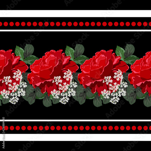 Seamless Background With Beautiful Red Roses Design For Cloth Wallpaper Gift Wrapping Print For Silk Calico And Home Textiles Vintage Natural Pattern Horizontal Border Buy This Stock Vector And Explore Similar Vectors