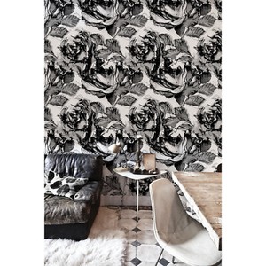 Magnolia Home Tea Rose White And Black Floral Wallpaper Me1534 D Marie Interiors