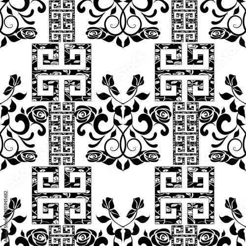 Black Rose Seamless Pattern On White Background Seamless Texture With Flowers Endless Floral Pattern Seamless Pattern Can