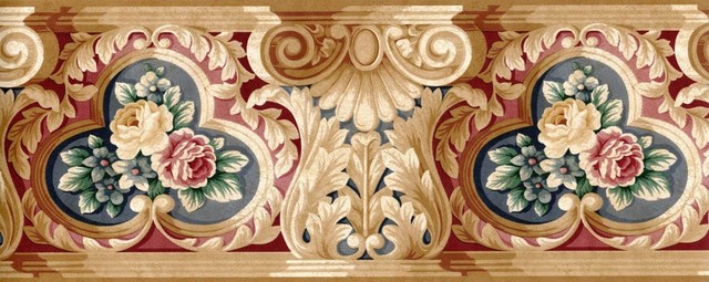 Wallpaper Border Pink Beige Cabbage Roses Lavender Blue Purple Ribbon 558101 Nip 91212000001 Ebay