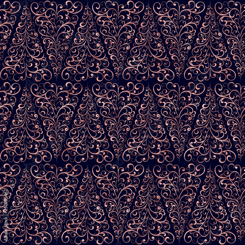 Christmas Tree Pattern Rose Gold On Navy Design Digital Foil Elegant Design For Background Wrapping Paper Fabric Print And Web Buy This Stock Illustration And Explore Similar Illustrations At Adobe Stock