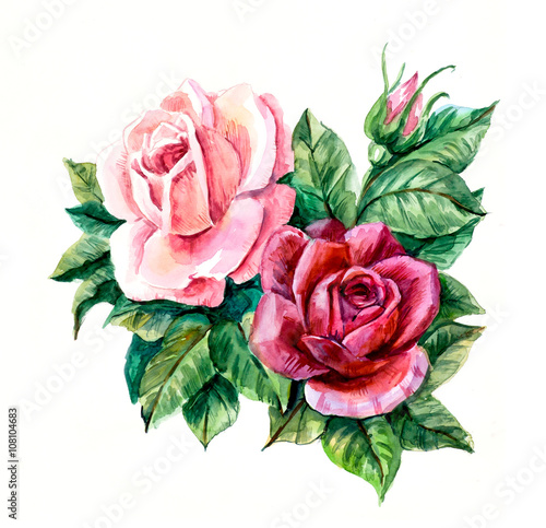 Two Pink Roses Pattern From Rose Wedding Drawings Greeting Cards Rose Background Watercolor Composition Flower Backdrop Buy This Stock Illustration And Explore Similar Illustrations At Adobe Stock Adobe Stock