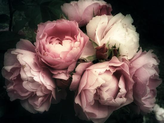 Beautiful Bouquet Of Pink Rose Flowers On A Dark Background Soft And Romantic Vintage Filter Look Photographic Print Art Com