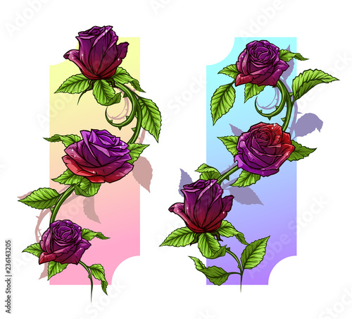 Graphic Detailed Cartoon Violet And Red Roses Flower With Stem And Leaves On White Background Vector Icon Set Vol 3 Buy This Stock Vector And Explore Similar Vectors At Adobe Stock