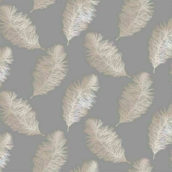 A Simple And Attractive Design This Dark Grey And Gold Effect Feather Metallic Effect Wallpap Feather Wallpaper Rose Gold Wallpaper Rose Gold And Grey Bedroom