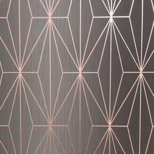 With its honeycomb pattern and glistening pink hue this wallpaper has a glamorous look. Light taupe white and pink triangles glisten with rose gold boarders creating a glamorous and contemporary design. Paste the wall non woven material.