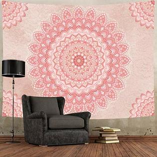 Pink Mandala Wall Tapestry With Images Rose Gold Bedroom Room Tapestry Wall Tapestry Pink