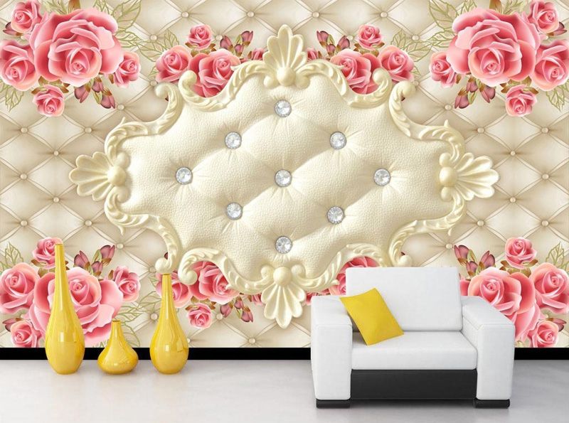 Luxury Flowers With Cream Background Pink Themed Jade Pearl Hollow Background Gold Lined Wall Murals