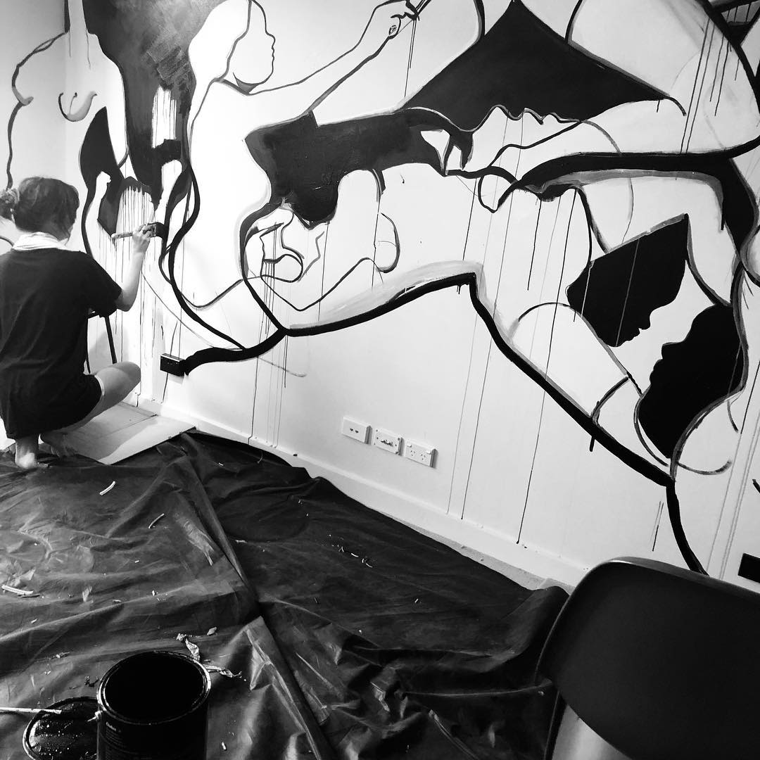 Amazon Com Murwall Floral Wallpaper Dark Flower Wall Mural Pink Peony Drawing Wall Print Dark Leaf Wall Art Living Room Bedroom Entryway Handmade