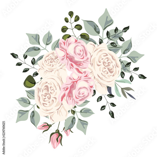 Watercolor Flowers Isolated On White Background Floral Illustration In Pastel Colors Pink Rose Bouquet Of Flowers Leaf And Buds Cute Composition For Wedding Or Greeting Card Buy This Stock Illustration And