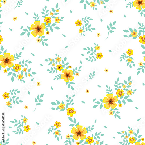 Seamless Floral Pattern Background In Small Yellow Flowers On A White Background For Textiles Fabric Cotton Fabric Covers Wallpaper Stamp Gift Wrapping Postcard Scrapbooking Buy This Stock Vector And Explore Similar